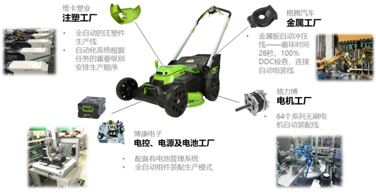 在制造体系垂直化方面,格力博在国内和越南两个制造基地建立起整机生产体系,拥有新能源电池包、无刷电机、智能控制器、充电器等80%以上核心零部件的自主设计与制造能力,极大地提高了产品质量的一致性和稳定性,大幅降低制造成本的同时保障快速响应客户需求。