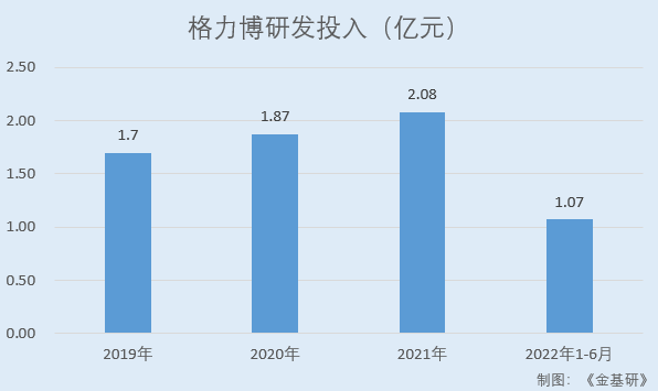 2019-2021年及2022年1-6月,格力博研发投入分别为1.70亿元、1.87亿元、2.08亿元、1.07亿元,占当期营业收入的比重分别为4.58%、4.35%、4.16%、3.37%。