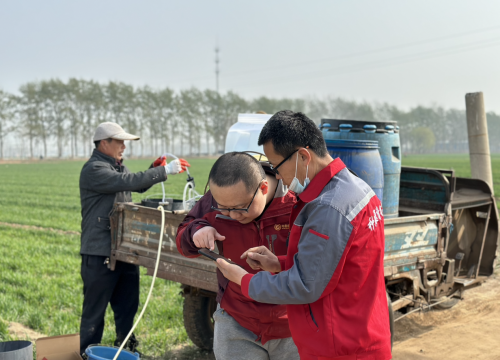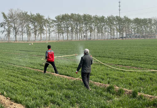 问今何人致太平?春耕春管人倍忙。山东临清,正是小麦拔节关键期,中和农信一站式种植服务站站长冯其瑞正在忙着为社员的小麦打“头遍药”。冯站长一边熟练地配药、一边介绍道,“这几天风大,我们的社员地块又比较小,无人机作业容易导致药剂喷洒不匀甚至是‘吹跑偏’”。为了不耽误最 佳打药时机,冯其瑞选择为社员提供手工打药服务。“虽然辛苦一点,但服务质量有保证。”系统显示,在专门的手机应用中的服务地图指引和消息提醒下,冯其瑞站长已经为上百户社员的700亩土地提供了春管服务。