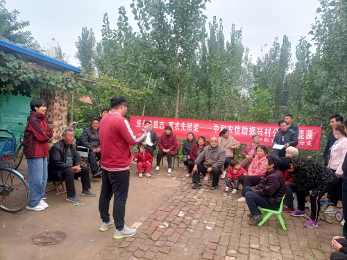 河北威县,中和农信当地分支在组织的“助振兴村”公益赋能活动,为农户进行种植知识培训。