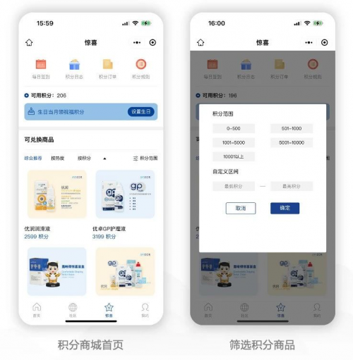 积分的使用可以为客户带来优惠减免,或是兑换商品。尤其对于周期性复购用户来说,提升用户使用积分的频次,通过签到的方式激励用户每天打开小程序,提升活跃度。