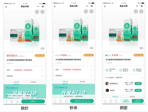 诊所不定期地通过爆款或常规商品打包套餐进行营销,可以刺激消费者促成冲动消费。砍价拼团,是用户发起砍价,通过分享商品链接给好友,让好友点击链接帮其砍价同时,凑成成团人数,最终让目标用户裂变的营销手法。