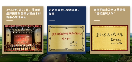 公司联合黑龙江省农科院开发共建国家耐盐碱水稻技术创新中心东北中心肇源基地,基地作为盐碱地稻作改良技术的运营商和孵化器,承担东北中心各创新团队的研究和示范工作,部分改良后的稻田以自然农法种植,由袁老和陈万鹏先生共同创建“禾之善”品牌(现由袁老之子袁定阳接棒),成就国内第 一款有机弱碱大米,并开发了由盐碱地原产稻米衍生的系列产品,包括健康米、宝宝胚芽米、稻香醇白酒等,未来也将规划袁隆平研学基地、帐篷天幕营地、稻田马拉松基地等,开拓盐碱地稻米产业链。