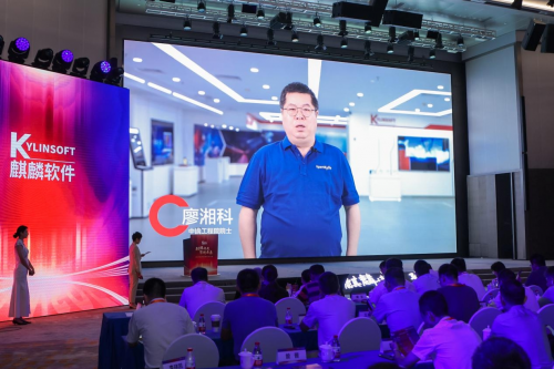 中国工程院院士廖湘科通过视频进行致辞,他提到:“麒麟操作系统获得国家科学技术进步一等奖,全球首款打造openKylin系统的RISC-V笔记本电脑面世,麒麟软件进入了中国操作系统市场的三甲。这一系列的成绩反映了我国基础软件等核心技术创新能力的提升和进步。”他号召产业界各方携起手来,以打造创新应用需求为导向,充分发挥操作系统底层支撑协同作用,以中国技术、中国方案、中国体系更加有力支撑国家网络安全和信息化事业。