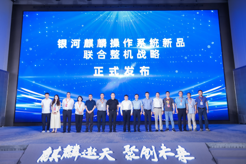 麒麟软件党委书 记、董事长谌志华代表麒麟软件与华为终端、联想开天、中国长城、同方计算机、中科可控、北京计算机技术及应用研究所、紫光计算机、神州鲲泰、宝德计算机、长城超云、百信信息、雷神数智、黄河信产等主机厂商代表,共同见证银河麒麟操作系统新品联合整机战略发布。