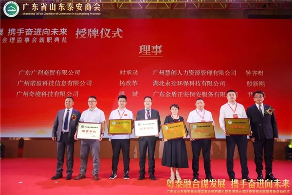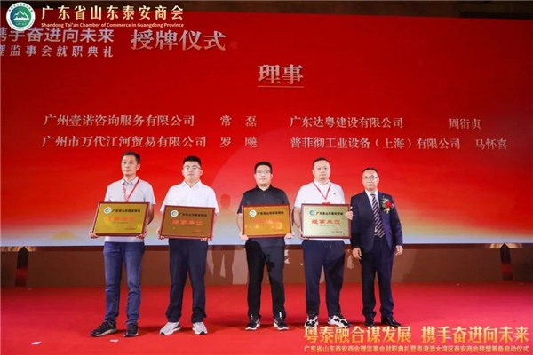 广东省山东泰安商会秦亮会长为广东省山东泰安商会理事颁发牌匾