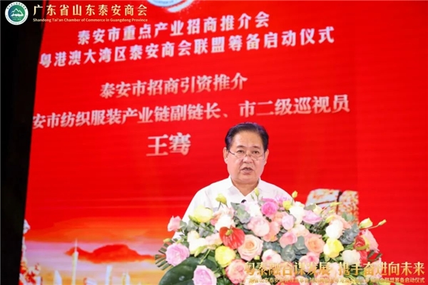 泰安市纺织服装产业链副链长、市二级巡视员王骞同志作招商引资推介