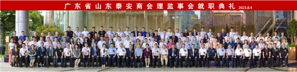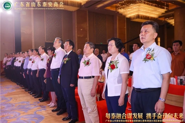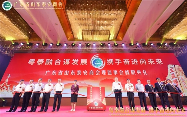 “粤泰融合谋发展, 携手奋进向未来”广东省山东泰安商会理监事会就职典礼暨粤港澳大湾区泰安商会联盟筹备启动仪式于8月4日下午在广州圣丰索菲特大酒店盛大举行。来自军、地老领 导,广东省、广州市相关部门领 导,山东省人民政 府驻广州办事处领 导,山东省泰安市委、市政 府领 导,全国各省、市级山东商会,全国各地泰安商会,广东省山东商会领 导班子、广东省各地市山东商会代表,广东省山东泰安商会全体成员,优秀泰安籍企业家代表等350余人参加了本次活动。