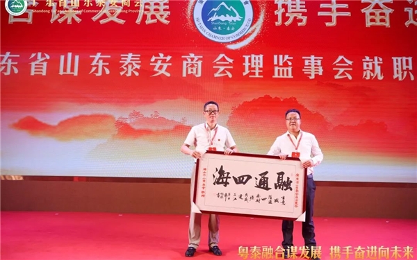 广东省山东商会向广东省山东泰安商会赠送贺礼