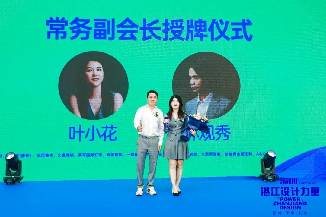 湛江设计力量总会秘书长陈德利为深圳湛江设计力量秘书长叶小花授牌