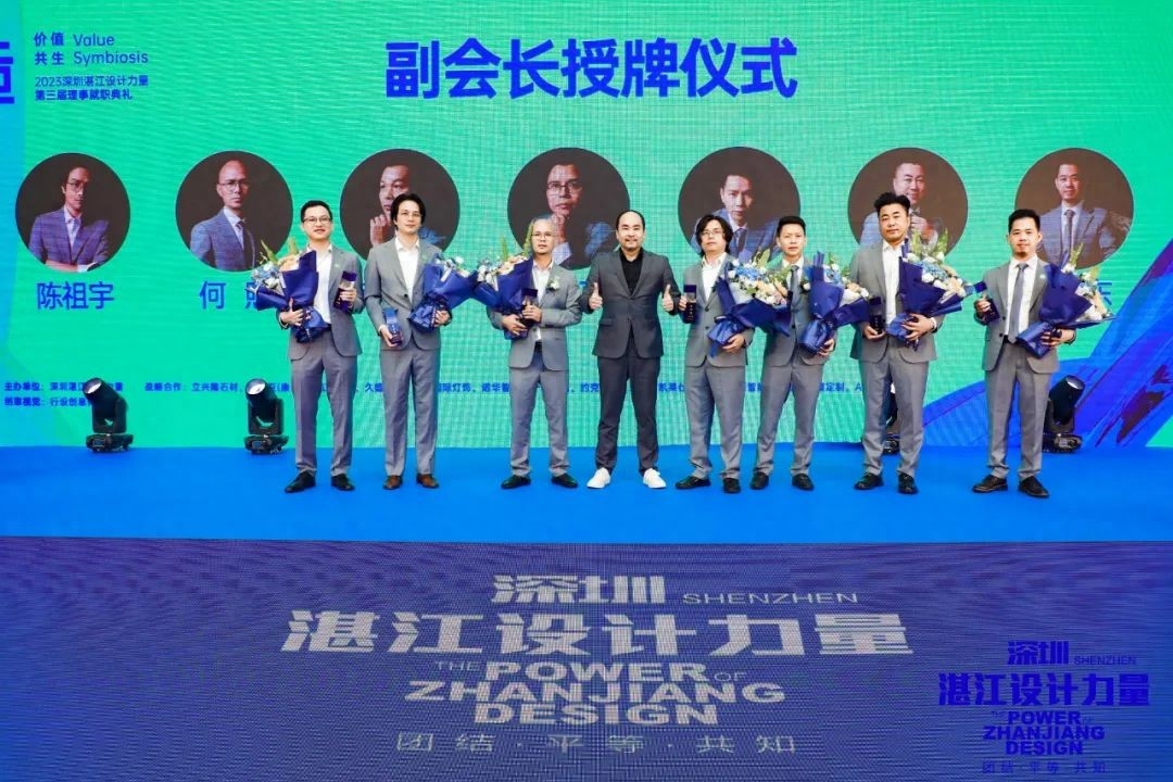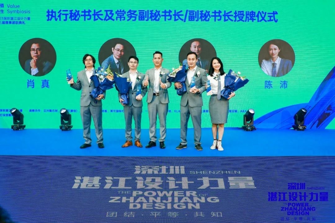 湛江设计力量总会常务副会长、北京会长田鸿基为深圳湛江设计力量执行秘书长肖真;常务副秘书长邓华春、陈丰光;副秘书长陈沛分别授牌