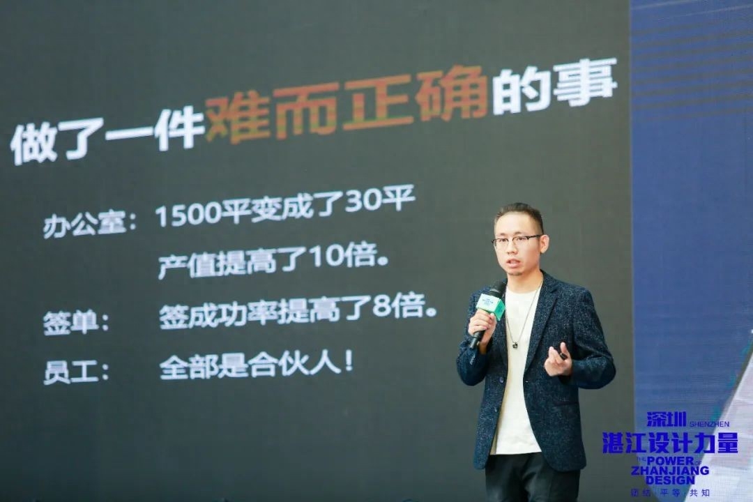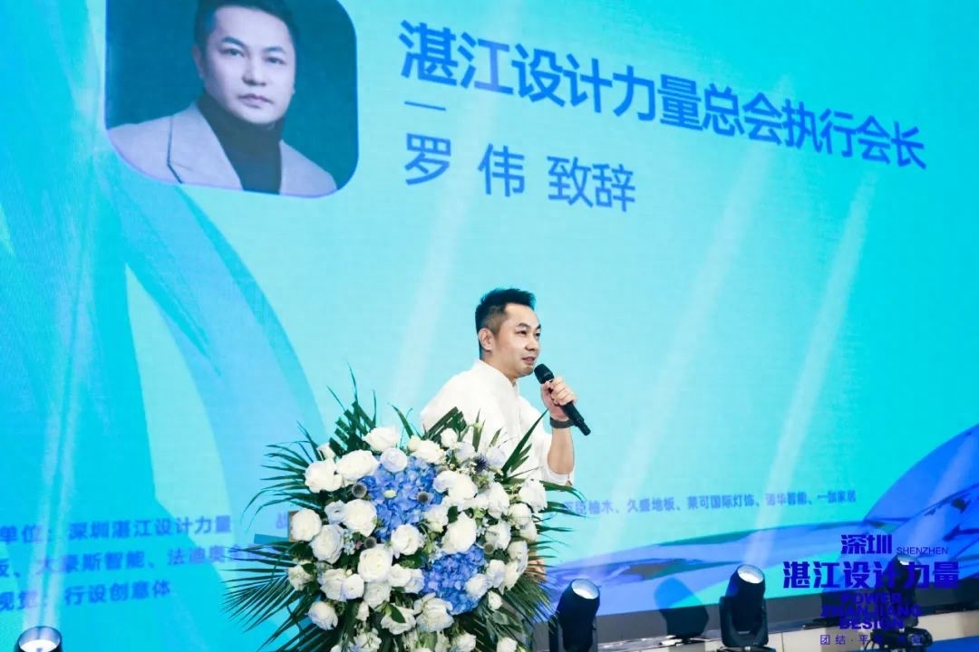 湛江设计力量总会会长、同心同盟设计董事长陈伟文表示,湛江设计力量是中国新一代设计师平台,发起于2014年,截止今日已即将迈向十年,以“提升新一代设计师影响力”为使命。以“创设计之乡,建百年协会”为愿景。陈伟文感谢曾担任两届深圳地区的罗伟会长,把湛江设计力量的旗帜插在深圳这片设计之都上,把湛江设计力量的品牌刷新到高度。深圳地区的发展,对湛江设计力量品牌的推动奠定了基础和高度。获得同行的高度认可和社会面的广泛赞誉。