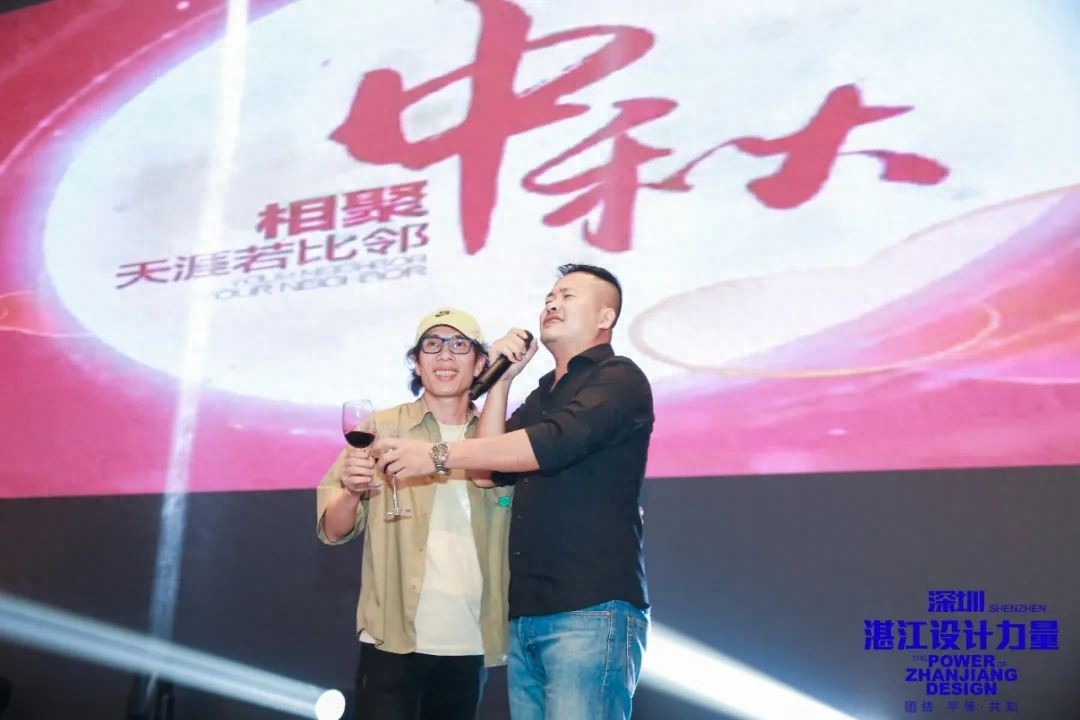 湛江设计力量总会常委与深圳执行会长上台祝酒,恭贺今日,同祝未来!