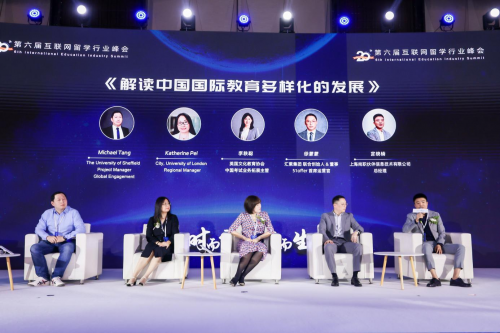 接下来,The University of Sheffield Progect Manager Global Engagement:Mr Michael Tang、City, University of London Regional Manager:Ms Katherine Pei、英国文化教育协会中国考试业务拓展主管:李轶聪女士、汇紫集团联合创始人&董事、51offer 首席运营官:徐蒙蒙先生和上海尚职伙伴信息技术有限公司 总经理:宫晓楠先生围绕“解读中国国际教育多样化的发展”这一主题,展开了圆桌讨论,从各自的专业视角分别提出了自己的建设性意见。