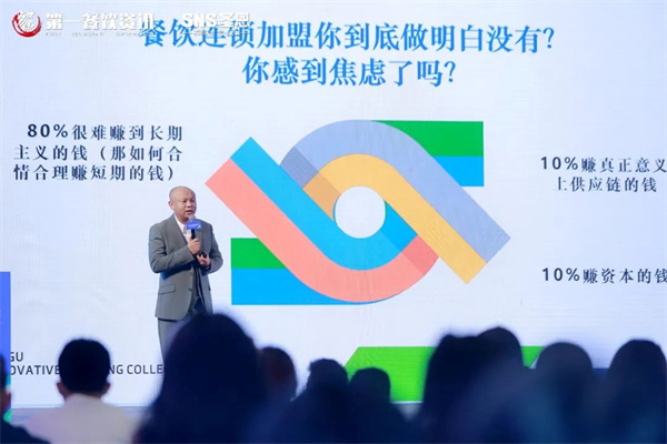 归谷创新餐饮学院院长黄鹏就餐饮企业如何通过连锁加 盟实现百城千店谈道:目前80%餐饮连锁品牌很难赚到长期主义的钱,加 盟商业模式应当用科技驱动运营,用运营驱动招商,再用招商驱动品牌,产品决定你的品牌能立起来,而标准决定你的品牌能做多大。