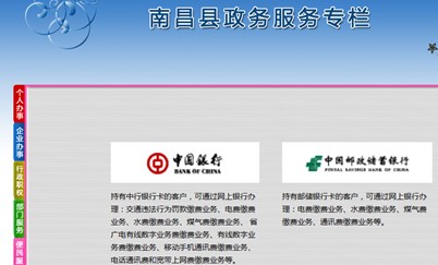 南昌县政府网站政务服务专栏共提供608项政务服务事项的服务。其中,行政职权事项513项,便民服务事项95项,此外,还公布了2466项行政处罚事项。专栏支持网上查询、网上申办、结果查询、网上咨询、网上投诉、网上评议、电子证照下载和验证;还提供供水、供电、燃气、通讯等公共服务,并实现网上支付功能,用户可足不出户实现办事及缴费,为用户的生产生活提供了极大的便利。
