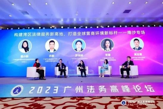 圆桌论坛环节,由广州市律兴律师业务发展研究院院长康小鸫主持。南沙区司法局副局长罗伟娴,广船国际有限公司合规与风险管理部副部长常蕾,广州汽车集团股份有限公司法律与合规部副部长许毅,金桥司徒邝(南沙)联营律师事务所主任黄志勇以“构建湾区法律服务新高地,打造全球营商环境新标杆”为主题,进行了深度的探讨。