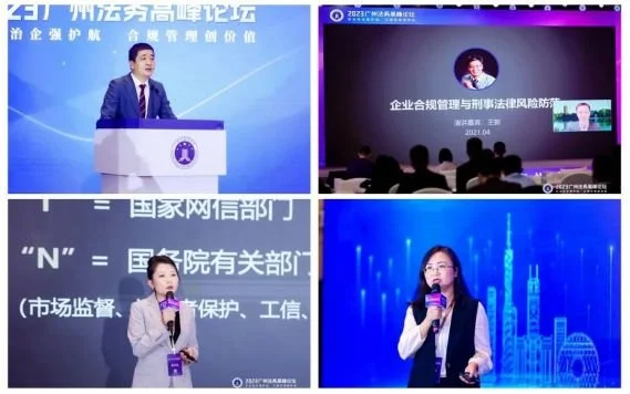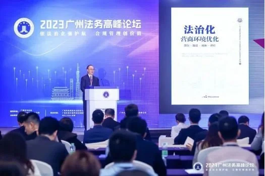 4月11日,“2023广州法务高峰论坛”在白云国际会议中心召开。本次论坛以“依法治企强护航 、合规管理创价值”为主题,由广州市司法局、广州市白云区人民政 府指导,广州市律师协会主办,广州市律师协会公职与公司律师工作委员会、广州市律兴律师业务发展研究院、WELEGAL法盟共同协办。广州市司法局、白云区各相关部门领导、广州市律师协会、律师事务所律师、企业法律顾问、高校专家等180余人参加了论坛。广州市司法局党委书 记、局长邓中文,广州白云区委副书 记、区长潘志军出席并致辞。