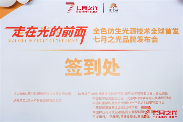 2023年4月18日,“走在光的前面”暨全色仿生光源技术全球首发、“七月之光”品牌全球战略发布会正式在北京举行。“七月之光”是由四川世纪和光科技发展有限公司历时31年研发的全色仿生光源国际品牌。