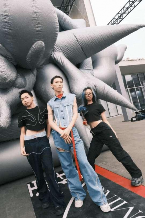 曾为Beyonce、Dojacat、KylieJenner等多位欧美一线艺人打造造型的00后设计师袁奇奇,携品牌Buerlangma在FUNTEEN昘霆展厅展示了华丽的百米长裙,吸引了众多买手、媒体及观众的关注。