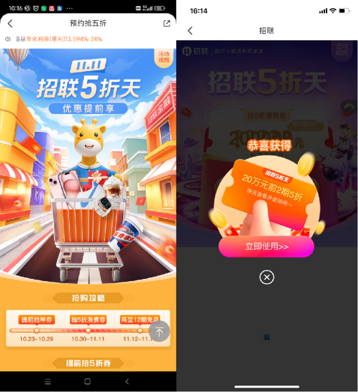 双十一是一年一度的购物狂欢节,你是不是已经准备好了各种购物清单,想要买买买?但是你有没有想过,如果你的钱包不够鼓,或者你的信用卡额度不够高,你怎么办?你是不是会错过很多心仪的商品,或者为了还款而感到压力?如果你有这样的困扰,那么招联五折天活动就是为你量身定制的!