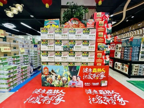 在重庆垫江,不少消费者在展航超市里惊喜地看到“森林人每日坚果乳”的新春营销活动“千箱堆”的生动化陈列,同时场外还搭建起了舞台为大家呈现精彩的歌舞、杂技表演,并设置了“爱满垫江、许愿美好”的抽奖活动——此时,2024年森林人新春营销主题活动“把爱带回家”于当日正式开启,把新春祝福与美好祝愿带给每一位在场的消费者。