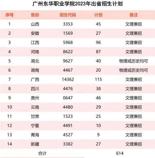广州东华职业学院:广州东华职院2023夏季高考计划招1279人,其中物理与历史均可招974人,美术术科统考130人,书法统考50人,体育统考25人,音乐统考100人。与2022年夏季省内普高招3921人相比,缩招了2642人。