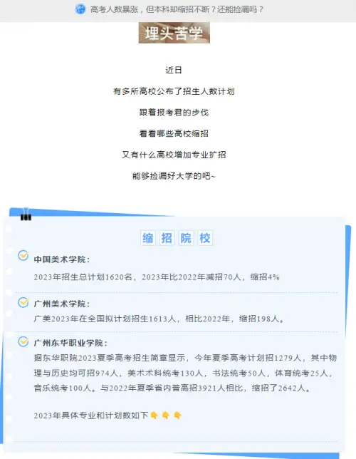 广州美术学院:广美2023年在全国拟计划招生1613人,相比2022年,缩招198人;