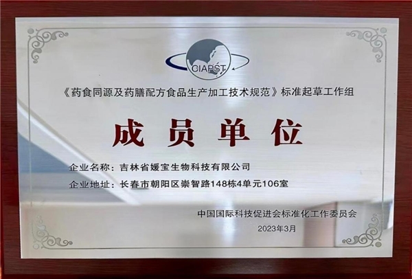 今年初,吉林省媛宝生物科技有限公司配合中国国际科技促进会标准化工作委员会,积极参与《药食同源及药膳配方食品生产加工技术规范》标准起草工作,作为该标准的起草成员单位,为食药行业的健康发展贡献了自己一份力量。吉林省媛宝生物科技有限公司长期致力于儿童健康和生长发育领域,其产品线涵盖了特殊医学用途配方食品、特殊膳食、保健食品、药食同源产品和营养补充剂等,为儿童提供全方位的健康支持。