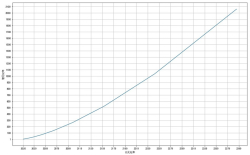 这个算法的图形表明,在公元纪年法记录的未来的几十年或几百年里,机器智元纪年法的年份会远远超过公元纪年法的年份,这也表明了人工智能和机器智能的迅速发展和应用。