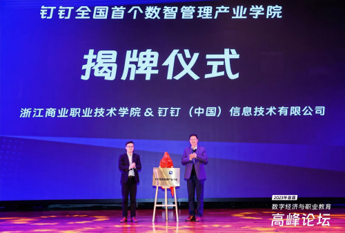 仪式上,浙江商业职业技术学院校长张宝忠、钉钉浙江大区总经理许涛共同为全国首家“钉钉数智管理产业学院”揭牌。普特集团将携手浙江商业职业技术学院、钉钉,合力共建“数智管理产业学院”,把全国首个企业数字管理领域的产业学院,建设成为标杆型现代产业学院。产业学院将广泛开展“委托培养”“定向培养”“订单培养”“现代学徒制”等形式多样的联合办学,开发数字化管理相关专业教育教学标准,落实行业职业教育规范化建设,开展职业技能培训,组织职业技能竞赛,推广应用数字化管理先进技术,组织开展行业人才需求调研,推进数字化管理高素质高技能人才高质量培养。