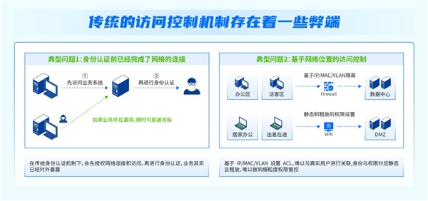 在整体网络架构中,远程办公只是一个相对独立的场景,用户的业务访问方式没有发生质的改变,依旧是先连接、后认证。一旦攻击者突破边界,整个内网将完全暴露。无论是攻防演练所暴露出的问题,还是真实世界中发生的网络安全事件,都在不断警示着我们:大部分安全事件的源头都来自于内部。