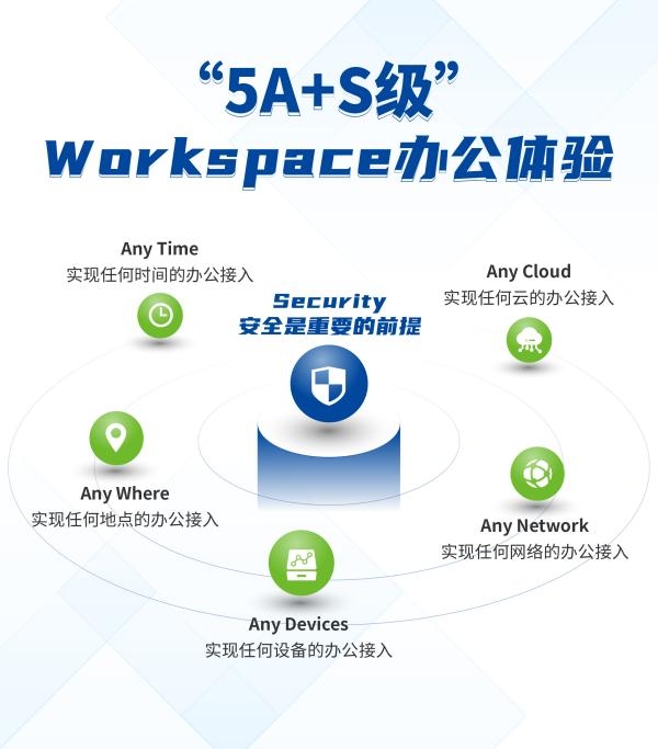 提供“5A+S级”Workspace办公体验,构建融合多种不同安全级别应用的数字化工作平台,在同一工作平台中实现不同密级应用的一站式访问,为办公安全与体验上一份“双重保险”。