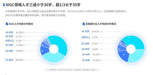从脉脉对于AIGC领域人才画像中不难分析出,该领域核心人才多为拥有多年互联网行业经验,并拥有学术成果和业务落地经验,这类人才不光要有创新思维,还要有成熟的项目落地和运营经验。