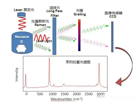 因此,能够通过光学仪器采集被照射物质的拉曼散射光,转换出光谱图,进行物质成分分析。
