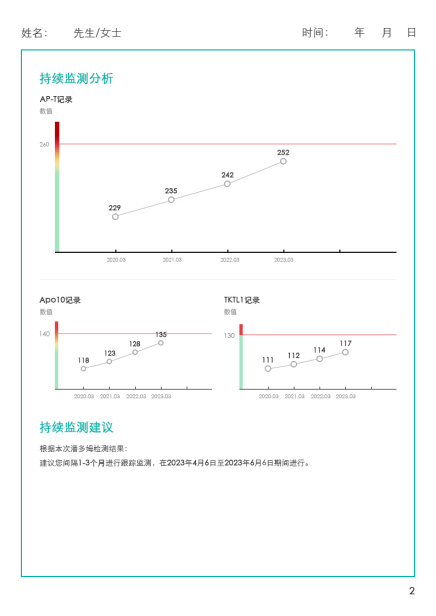 潘多姆检测临床应用定 位十分明确,为普通人群提供癌症预防整体化解决方案。通过持续定期进行潘多姆检测,监测全身肿瘤病变发展,可以实现全身肿瘤预防监测。另一方面还可以在潘多姆检测达到阳性(AP-T≥260且Apo10≥140)时即视为肿瘤告警,有必要进行全身PET-CT检查,及时溯源定 位。起到及时告警、全面溯源的作用。全身肿瘤预防监测服务是蔚恩健康在肿瘤早期筛查检测技术领域的一次重要突破,将为肿瘤患者带来更多的福音。