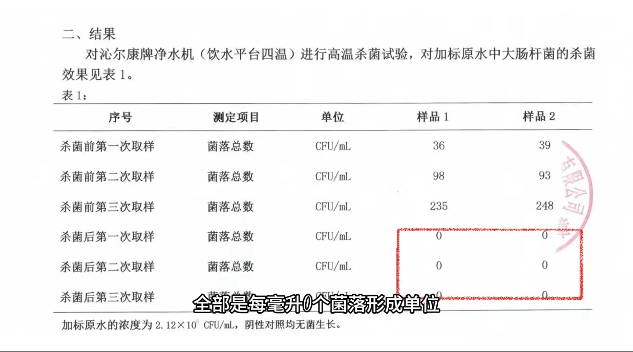 江苏赫尔斯检测技术有限公司高级工程师郭亚男通过视频方式,介绍了他们针对沁尔康全管路高温杀菌技术进行检测的方法、结果及意义:向沁尔康校园净饮水平台管路注入高浓度加标大肠杆菌水,连续三天检测可见大肠杆菌在管路内快速繁殖孳生。经运行沁尔康全管路自动消毒功能,再连续检测三天,出水细菌始终为零,由此得出结论:沁尔康全管路自动消毒技术能非常有效、彻底地灭杀饮水平台管路内的细菌。