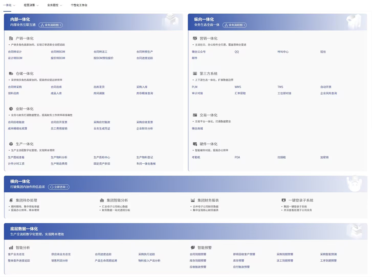 智邦一体化ERP“一体化”功能导航图