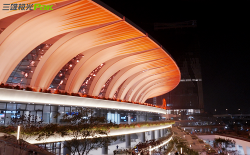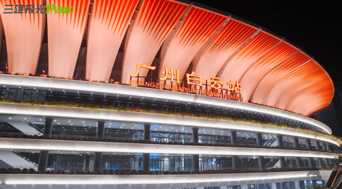 “云山珠水,盛世花开”,广州白云站的站房设计以此为灵感,展现了独具特色的岭南文化元素。此次三雄极光作为广州白云站的户外整体照明解决方案服务商,为其量身打造了泛光照明整合提升方案,以展示广州城市名片与绿色生态的设计理念为核心,构筑标志性城市形象。