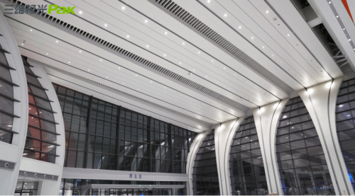另一方面,白云站作为广州重要地标性建筑,需通过灯光使整体建筑在夜间更具标志性,以此美化城市,激发文旅消费市场。三雄极光采用屋面亮化照明,对可观看范围内的屋檐层,加装LED筒灯,从而提高建筑在夜间的辨识度,并兼顾天窗下方的功能性照明,辅助室内光效及照度,突出层次感。