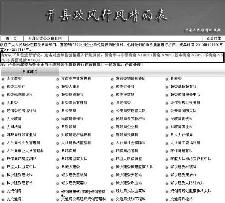 该网请广大群众对197个部门、17个公用企业单位投票,评它们的服务质量。投票时间从2010年12月20日起,到2011年1月15日止。