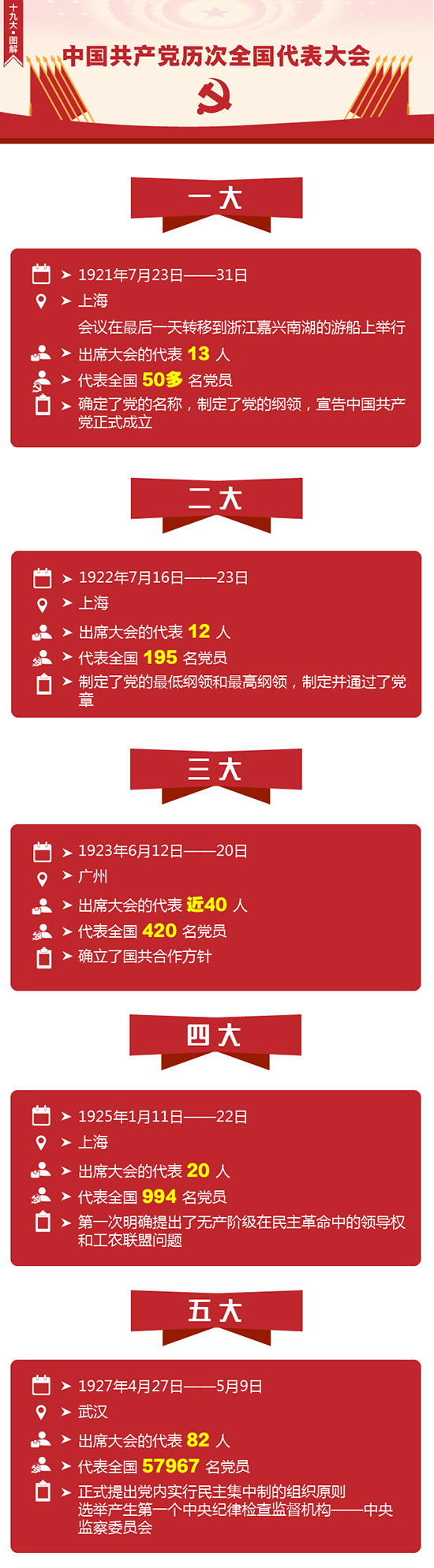 一图看懂中共历次全国代表大会 2017-10-18 15:18 来源: 中国新闻网 查看: 次 分享11 0 标签 北京 十九大 中国共产党 责任编辑:lihui 免责声明:除非特别注明,国脉电子政务网所载内容及图片来源于互联网、微信公众号等公开渠道,不代表本站观点,仅供参考、交流之目的。转载的稿件及图片版权归原作者或机构所有,如有侵权,请联系删除。 关注国脉电子政务网,政府CIO的思想阵地与交流平台,5000位政府CIO在这里读懂“互联网+政务”