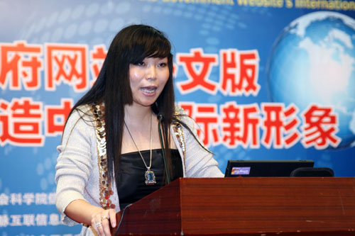 上海飞来飞去多媒体创意公司董事长杨青青以《政府网站的经济服务功能》为题做了现场发言,对外文网站的使用效果与改进建议提出了自己的看法。她认为,网站需更明确并强化自身的地位,建立信任感和亲切感,在飞速发展的信息化时代,上网其实不是个人活动,而是一项社会活动。她特别提出了区域门户网站的互动功能与跨区域合作,主张把区域门户网站做成社区资源,做成家庭生活的一部分。