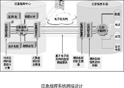 电子政务网是由内网、专网和外网组成,如果要承载庞大的突发公共事件应急信息系统,就必须具备很大的带宽保障、多业务承载能力和网络自适应能力,同时考虑到应急信息系统不仅仅是政务范畴,甚至是社会范畴,因此在信息网络的架构方面也必须考虑到和公众网络以及专网的连接。在这样的信息系统中,从信息的采集、汇集、存储和计算,最终为决策提供依据,通过将决策高效分解、存储、下达和执行,来保障能够最大限度地减少突发公共事件给人民生命财产安全带来的损害。