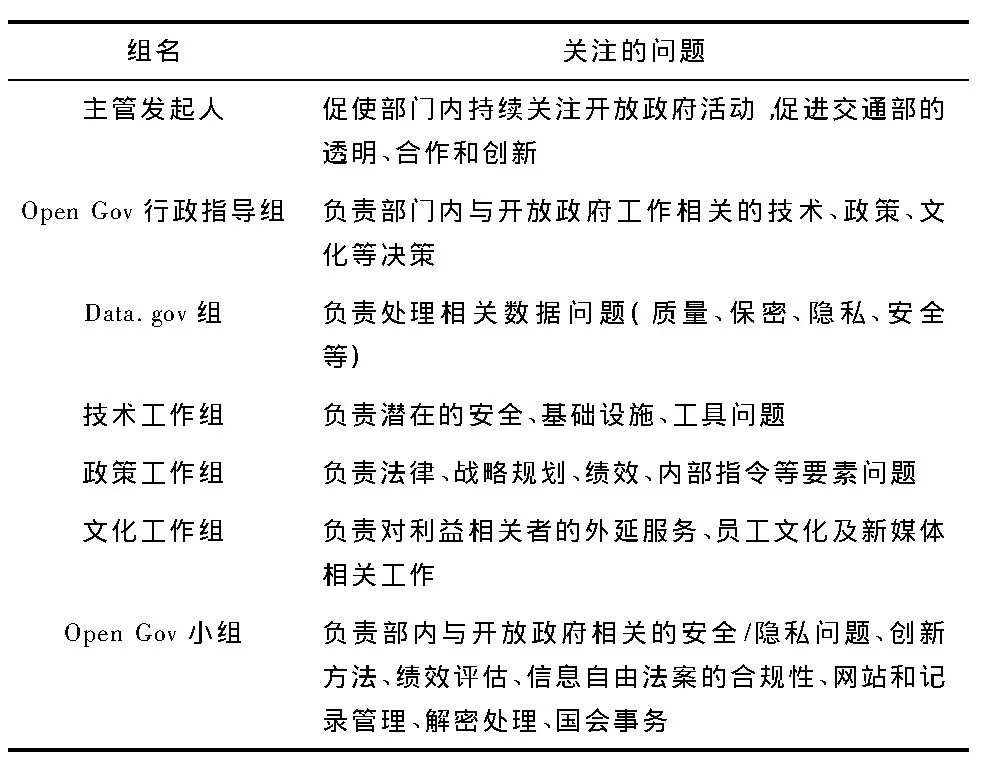 表1 DOT开放政府组成及关注的问题