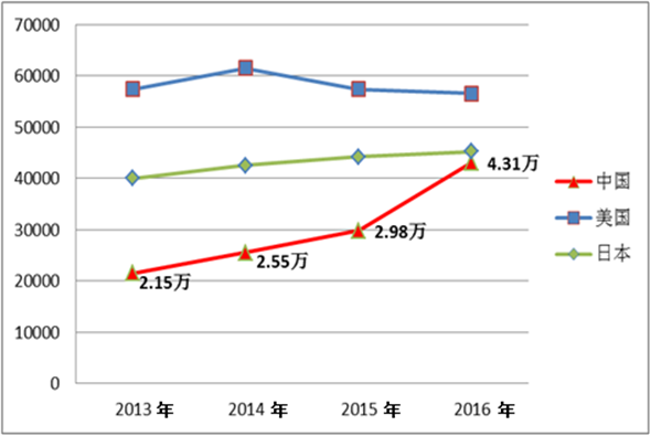 图1 主要国家信息技术领域国际专利申请数比较