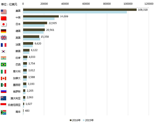 图4 2015-2016年G20数字经济规模