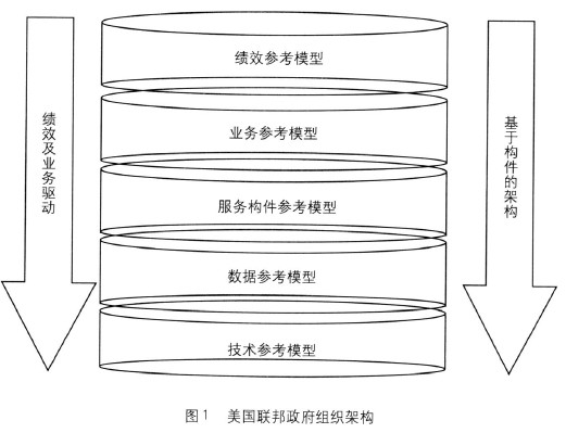 2002 年,美国预算管理办公室(OMB)根据“联邦政府组织架构框架”的基本精神,提出了“联邦政府组织架构”(Federal Enterprise Architecture,FEA),并为此成立了“FEA项目管理办公室(FEAPMO)”。FEA 的目的是将整个联邦政府所有机构的错综复杂的关系当作一个大型的组织系统,根据信息化和电子政务的基本规律,大胆地规划网络环境下的全新的联邦政府行政管理体系(参见图1)。