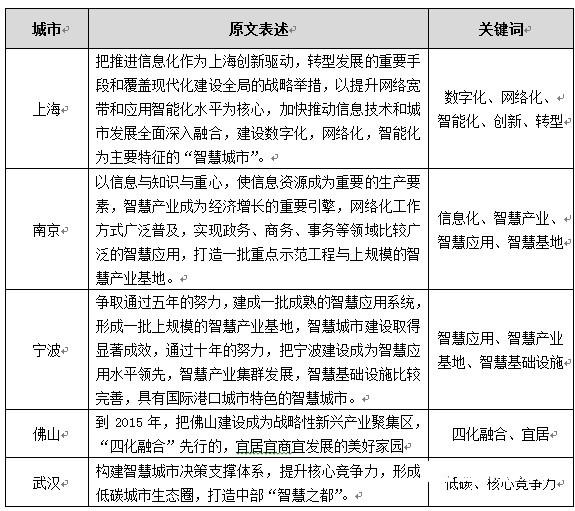 各城市建设智慧城市战略目标