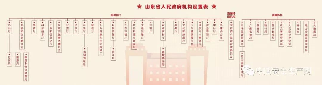 组成部门(23个):发展和改革委员会、教育厅、科学技术厅、工业和信息化厅、民族宗教事务委员会、公安厅、民政厅、司法厅、财政厅、人力资源和社会保障厅、自然资源厅、生态环境厅、住房和城乡建设厅、交通运输厅、水利厅、农业农村厅、商务厅、文化和旅游厅、卫生健康委员会、退役军人事务厅、应急管理厅、审计厅、外事办公室